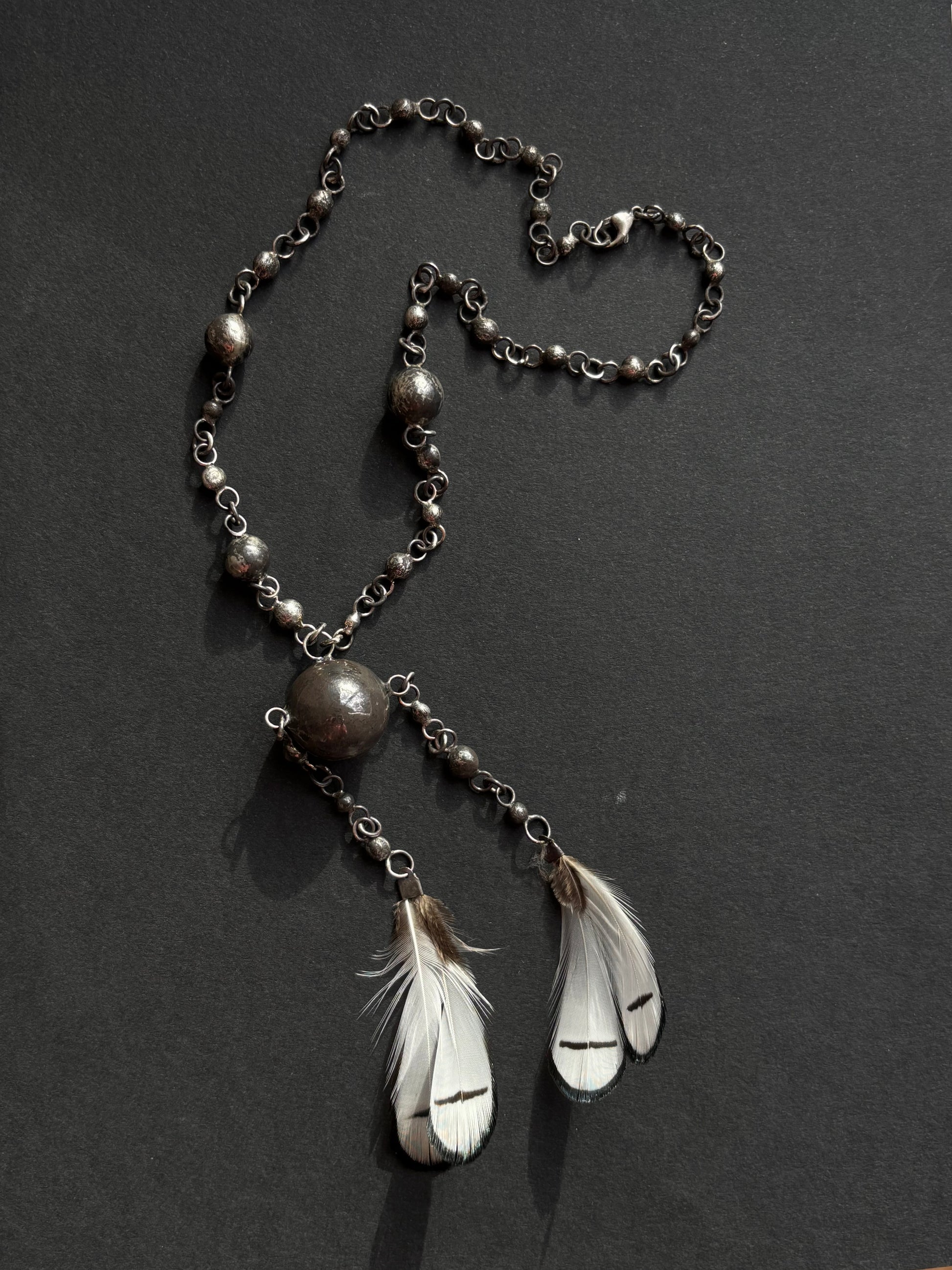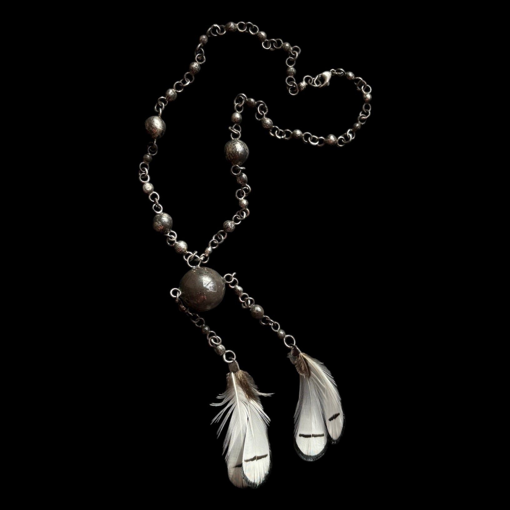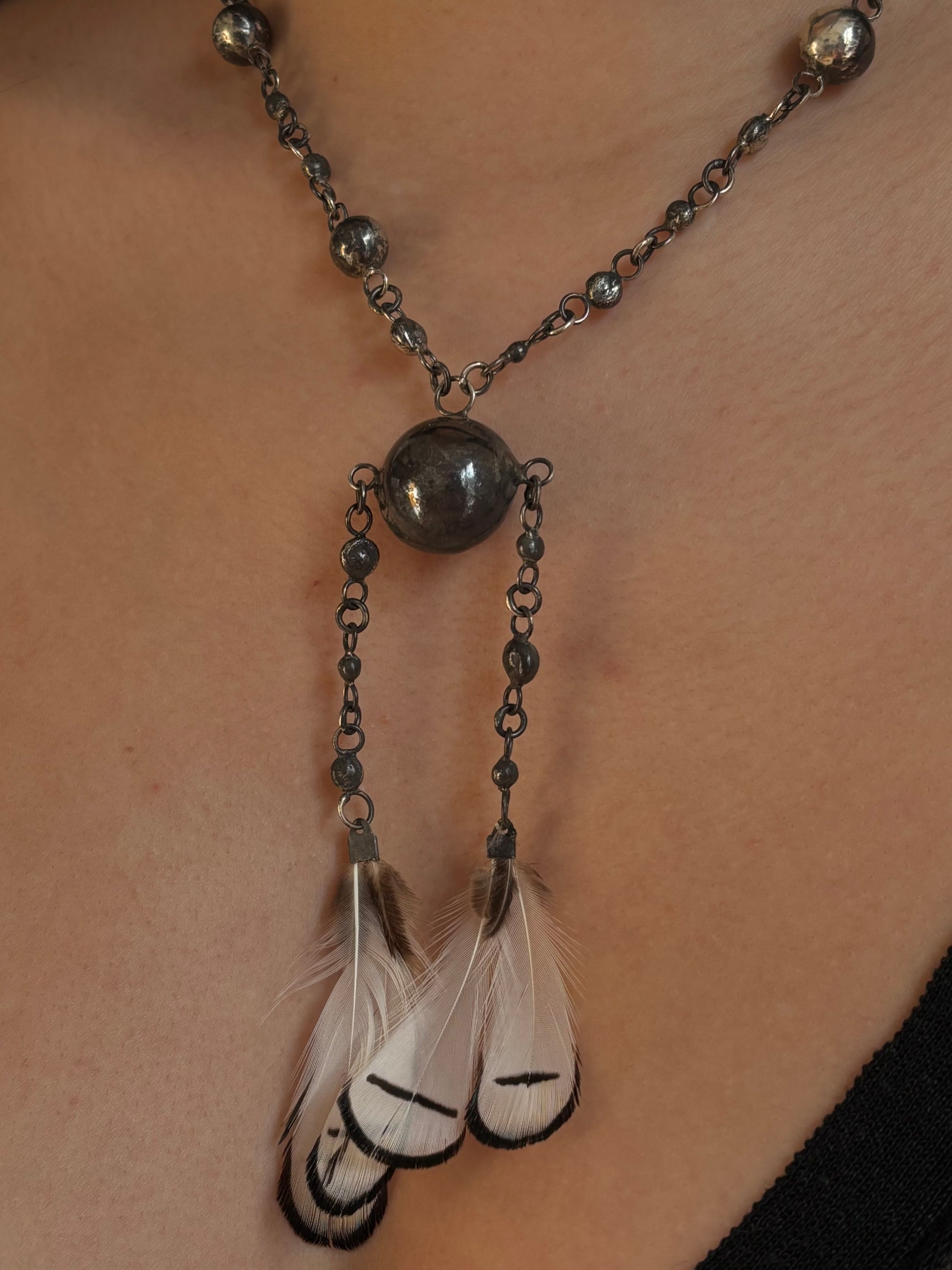 Sterling silver bubble necklace with pheasant lady Amherst feathers
