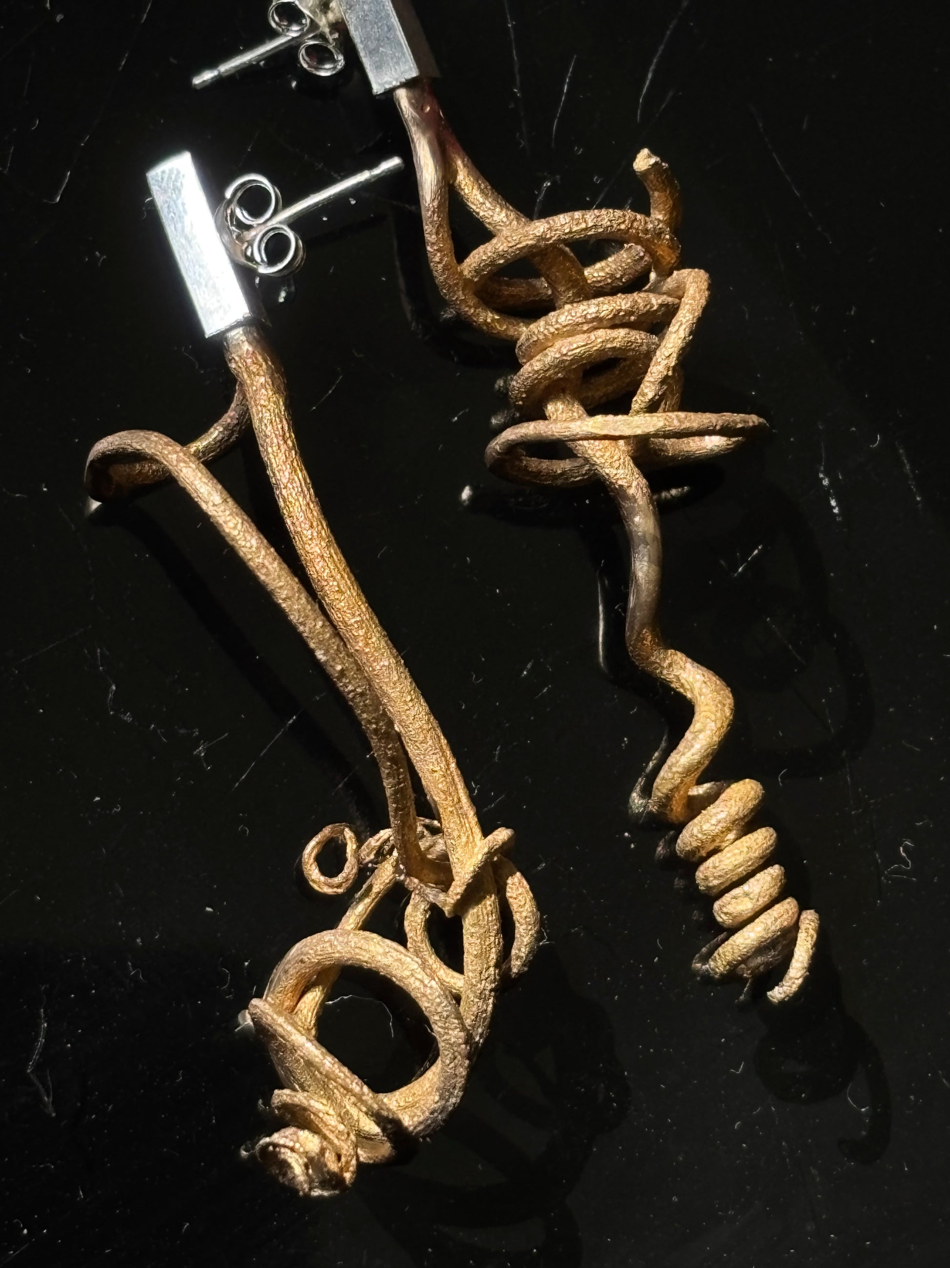 Bonze earrings with silver top made from vines swirls