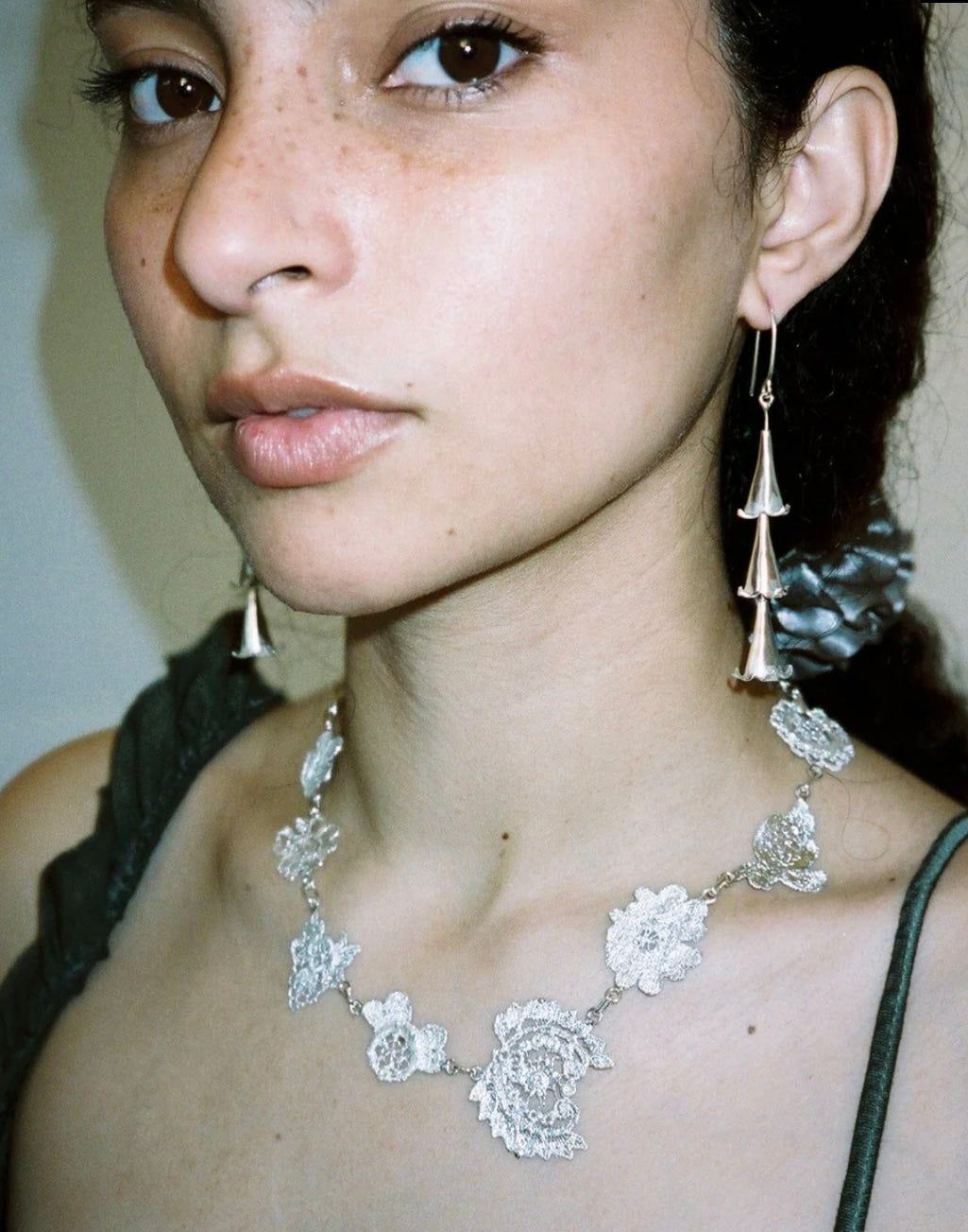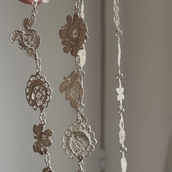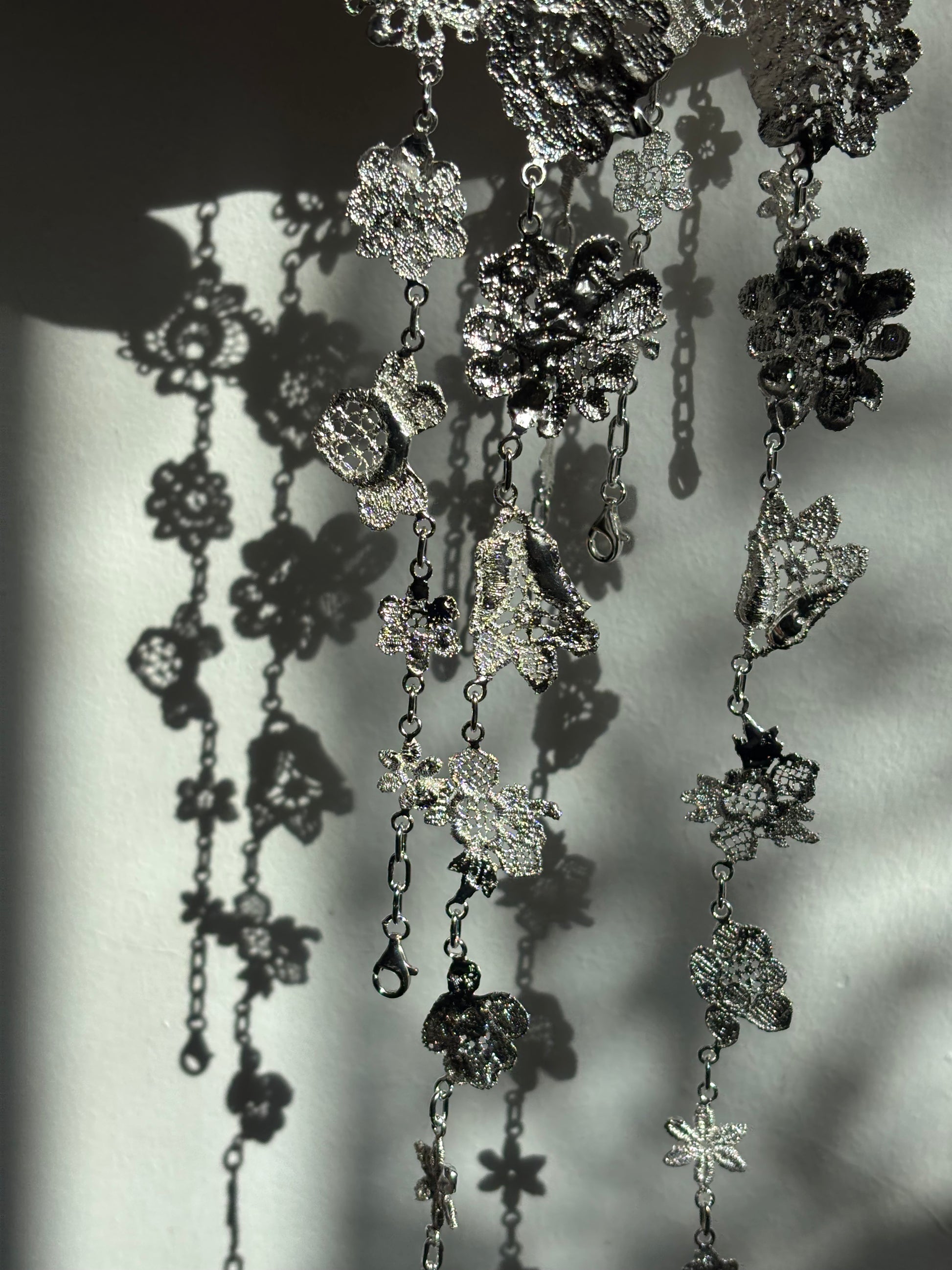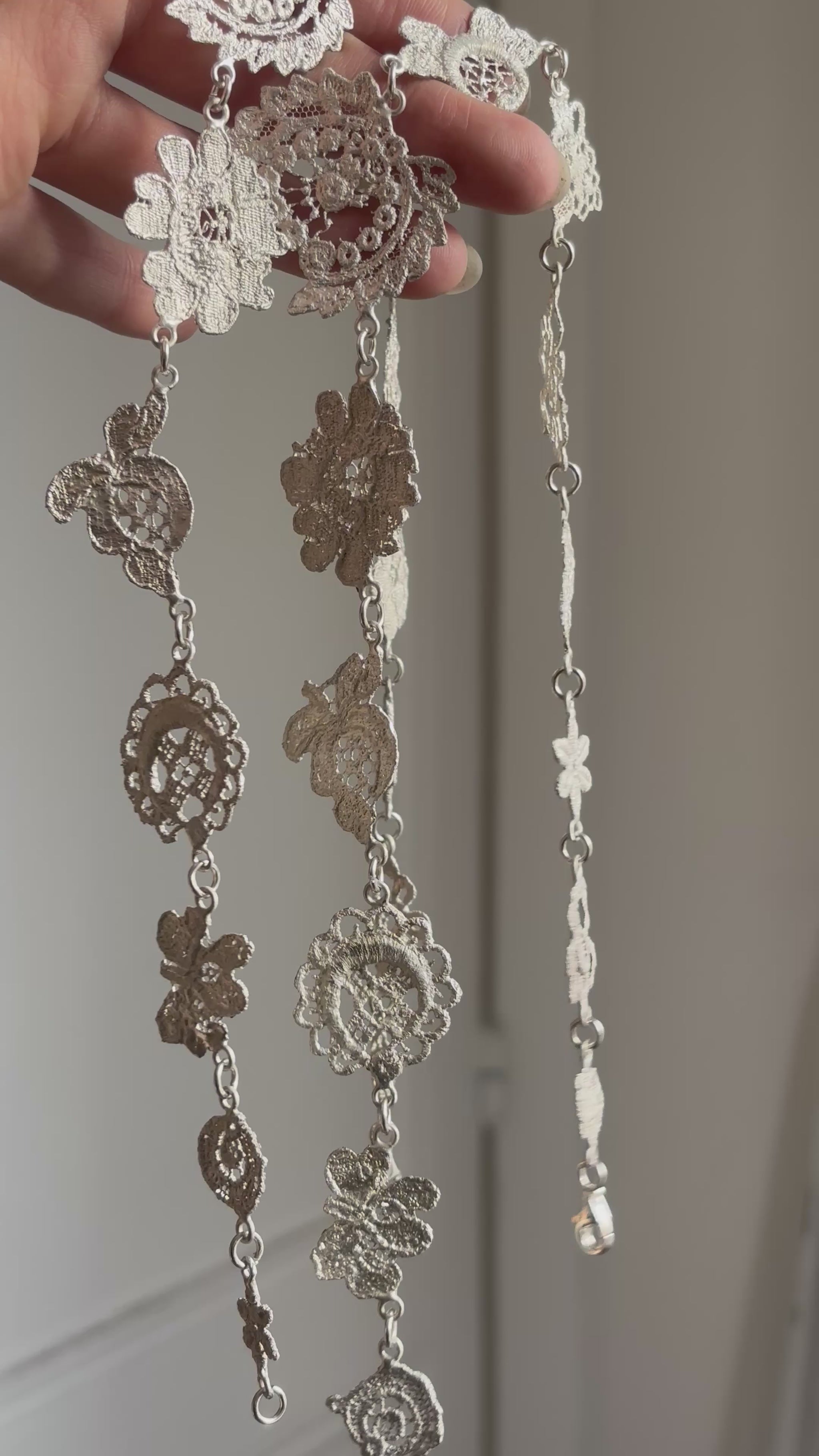 This necklace is made on order and required 2-3 weeks after purchase to be ready also each lace I use for my design is vintage and burn during casting so it’s impossible to replicate exactly one specific style each necklace is different and unique.